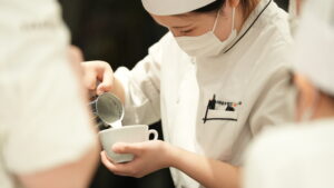名古屋ユマニテク調理製菓専門学校で、今年も未来のパティシエの卵たちにラテアートの授業を担当させていただきました。実は、この授業を担当させていただいてから10年以上が経ちます。