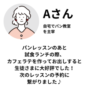 ご家庭やお教室、小さなカフェでお出しするラテのレベルが一段と上がります。