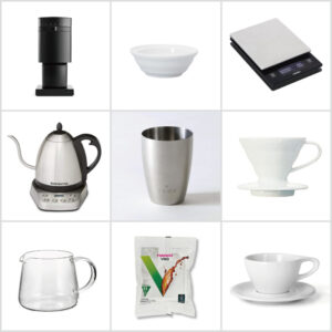 動画内で使用するコーヒー器具と同じものがセットになっており